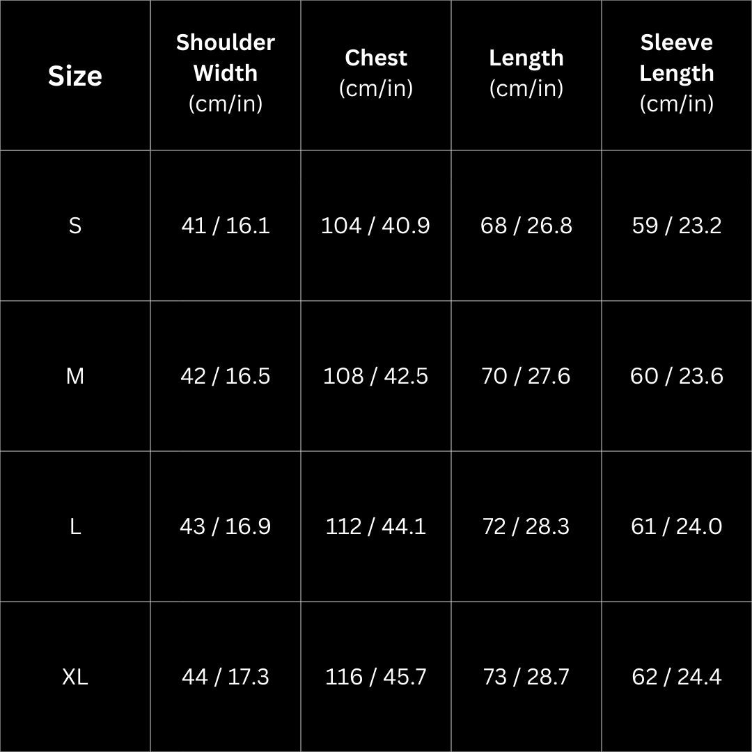 Note: If you're unsure between two sizes or favor a more relaxed fit, please choose the larger size.